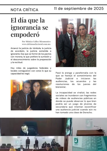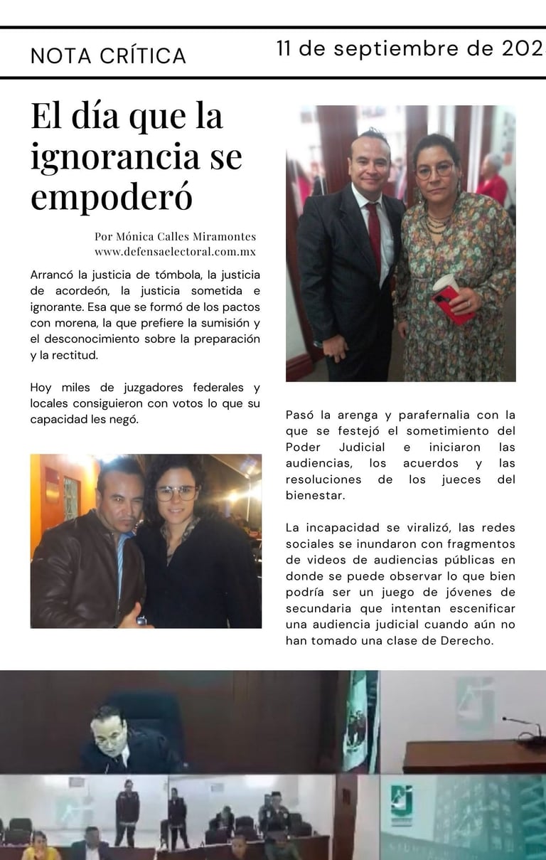 Arrancó la justicia de tómbola, la justicia de acordeón, la justicia sometida e ignorante. Esa que se formó de los pactos con morena, la que prefiere la sumisión y el desconocimiento sobre la preparación y la rectitud.