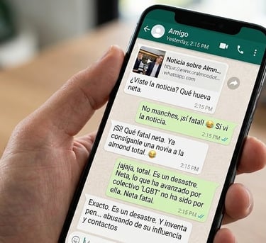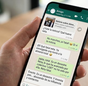 Sobraría explicarlo, era una comunicación privada inviolable que jamás debió ser filtrada; sin embargo, en los mensajes tampoco existe una explicación lógica para que el Estado se haya vuelto el guardián de los nervios de la diputada. No son más que un puñado de frases que se aislaron del contexto como: “Ya consíganle una novia a la almond”, "inventa pen… abusando de su influencia y contactos" y “lo que ha avanzado por el colectivo ‘Igbt’ no ha sido por ella".